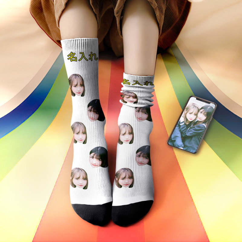 同性カップルプレゼント-カスタムフェイスソックス-写真入り名入れ可能なオリジナル靴下