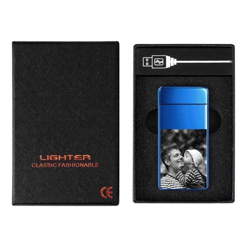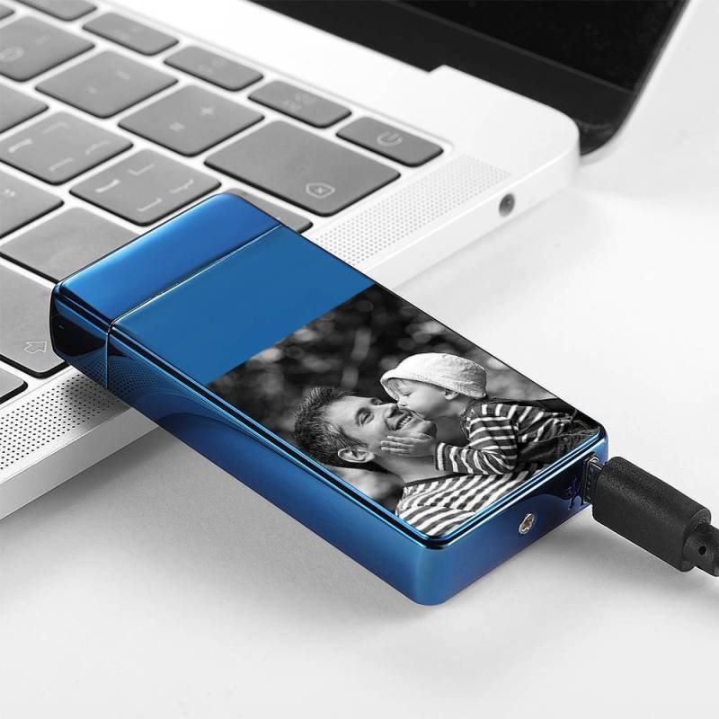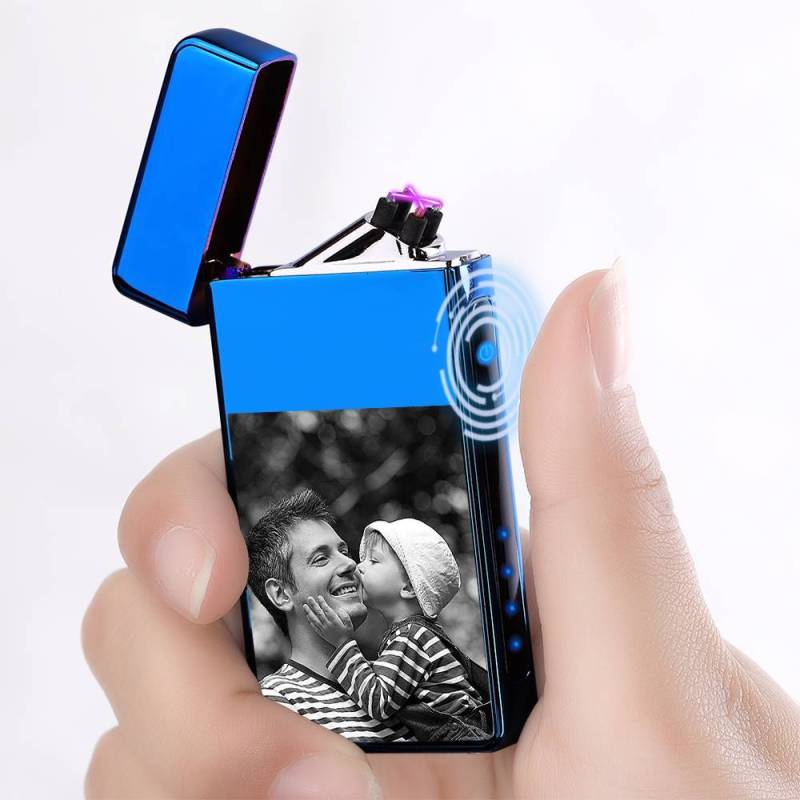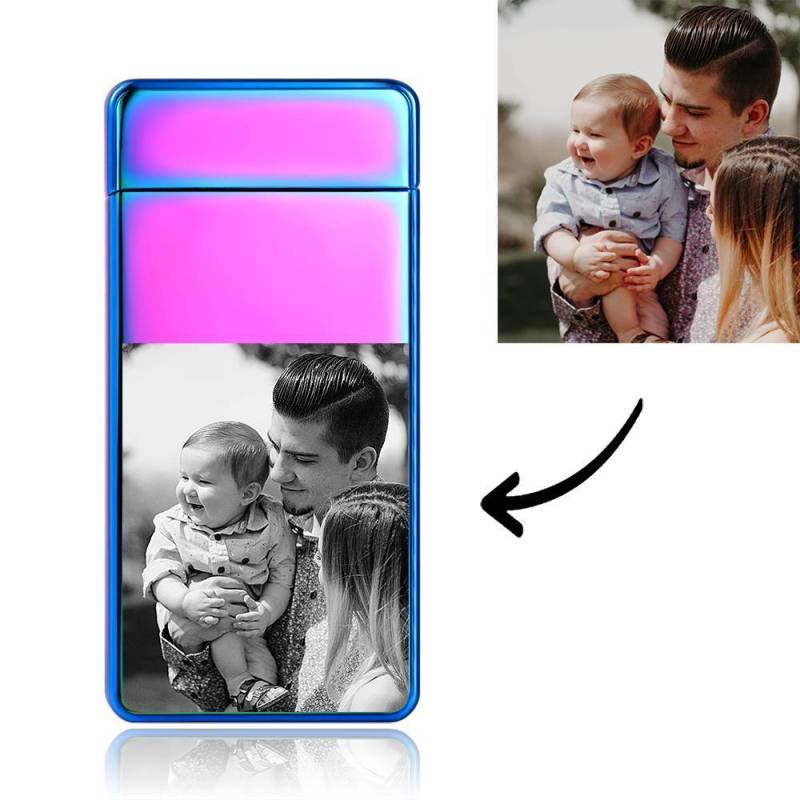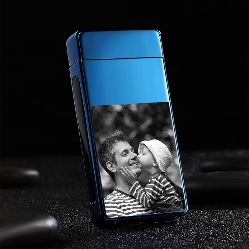 Father's Day Gifts Men's Personality Custom Electric Blue Perfect Family Photo Lighter, Engraved Lighter