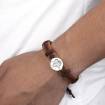 Men's Round Photo Engraved Tag Bracelet Brown Leather Strap