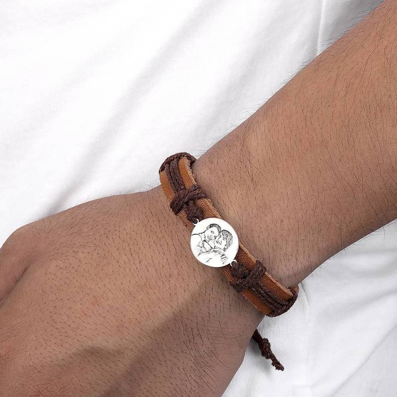 Men's Round Photo Engraved Tag Bracelet Brown Leather Strap Men's Round Photo Engraved Tag Bracelet Brown Leather Strap Men's Round Photo Engraved Tag Bracelet Brown Leather Strap Men's Round Photo Engraved Tag Bracelet Brown Leather Strap