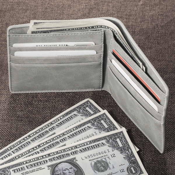 メンズバイフォールドショートカスタムフォトウォレットライト財布グレー
