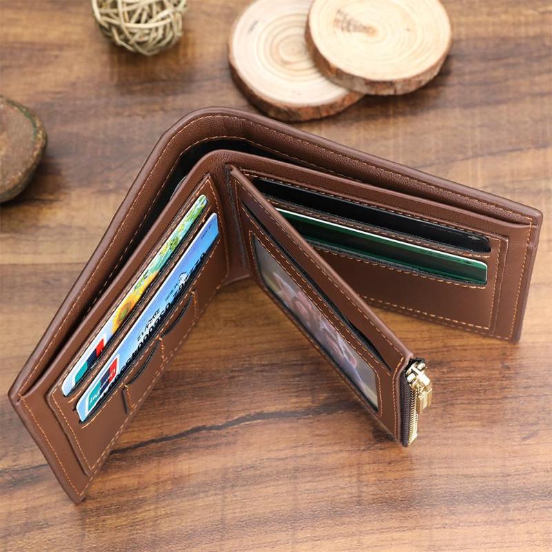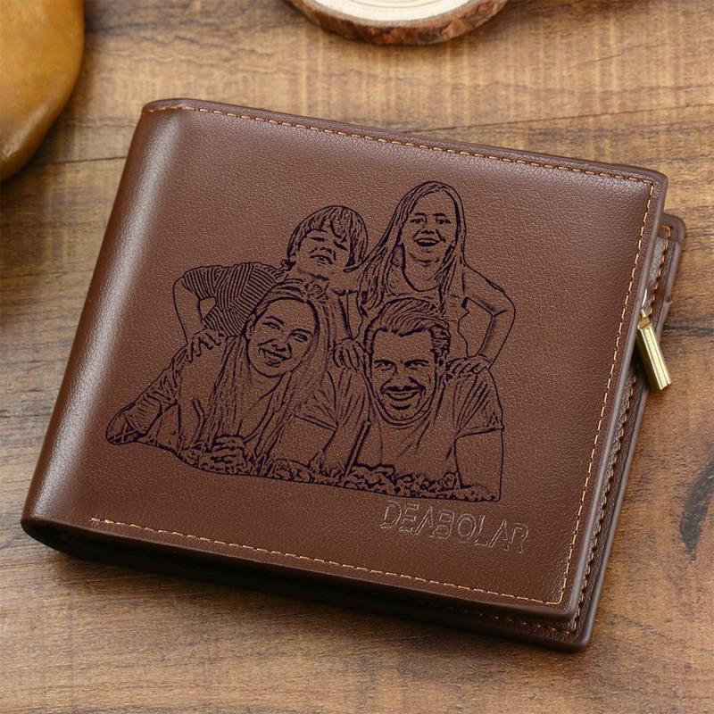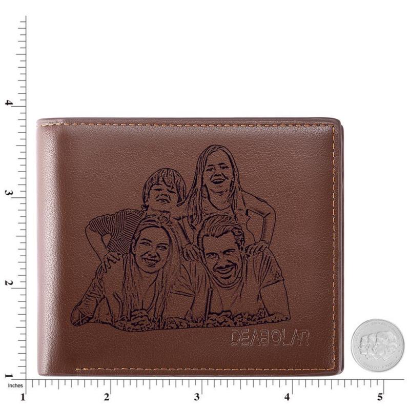 メンズ三つ折りカスタムフォトウォレット財布-ブラウン