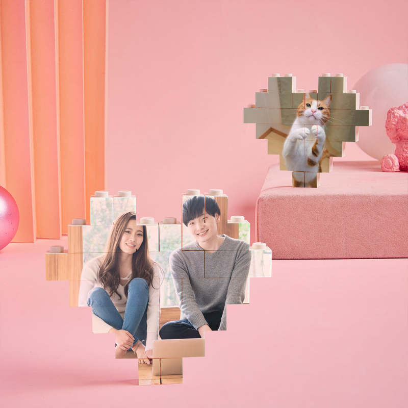 カスタムハート形フォト立体パズル - 写真入れ可能なオリジナルキューブジグソ—パズルプレゼント恋人へのギフト