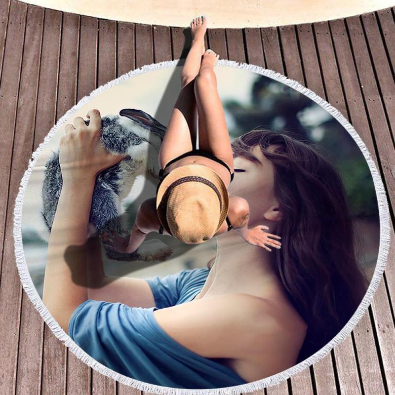 Personalized Beach Towel Round Beach Blanket Tassel Beach Mat for Party