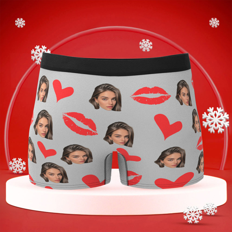 パーソナライズされた赤い唇,カスタム下着,カスタム写真の下着,カスタム写真のクリスマスパンティー