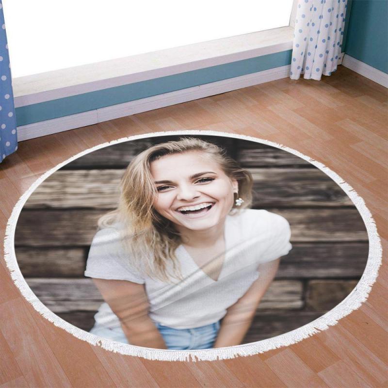 Personalized Round Beach Towel Custom Gift Tassel Beach Mat for Girlfriend