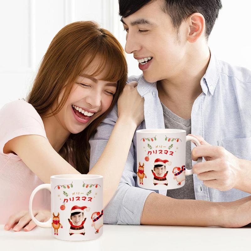 カスタムフェイスマグカップ-写真入り可能なクリスマストナカイと小熊柄マグカップギフト カスタムフェイスマグカップ-写真入り可能なクリスマストナカイと小熊柄マグカップギフト