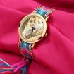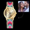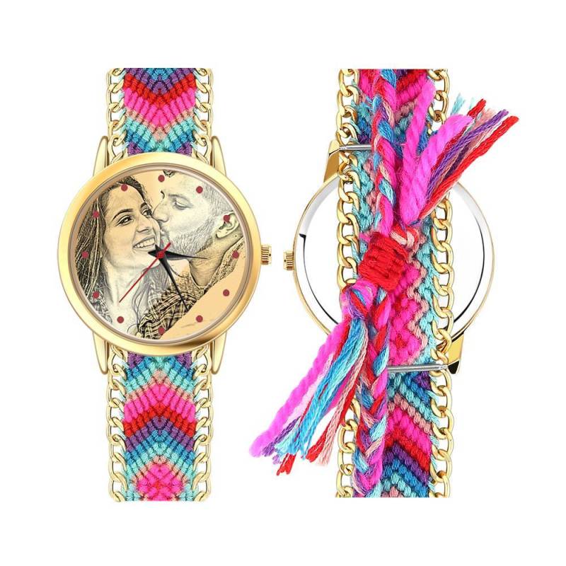 レディースゴールドフォト刻印時計編み込みカラーロープストラップ40mm