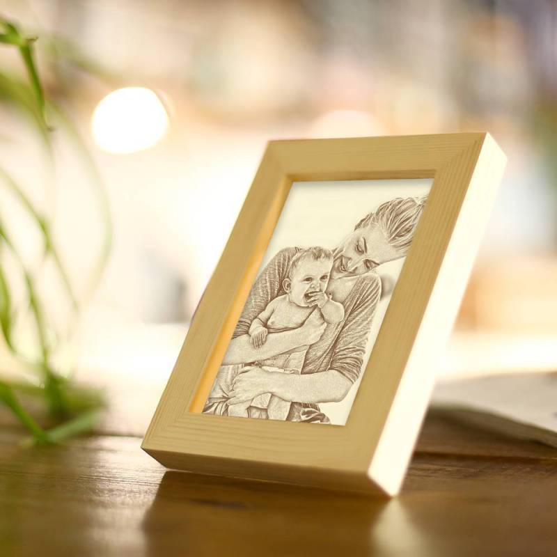 Gifts for Mom Wooden Custom Family Photo Frame Home Decoration Sketch Effect - 5 Inches